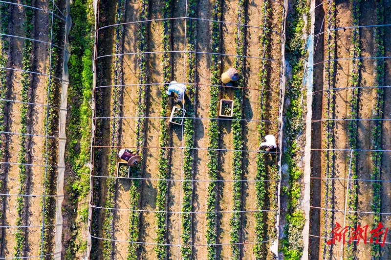 10月10日,吉首市矮寨镇坪朗村,村民在田间管护草莓。时下正值草莓生长的关键期,当地农户抢抓农时,进行草莓田间管护工作,为草莓丰收打下坚实基础。刘振军 摄(湖南图片库)