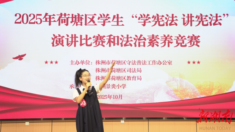 为弘扬宪法精神,普及法治知识,近日,株洲市荷塘区成功举办了2025年“学宪法 讲宪法”演讲与素养大赛。比赛由株洲市荷塘区守法普法办、区司法局、区教育局主办,株洲景炎小学承办。