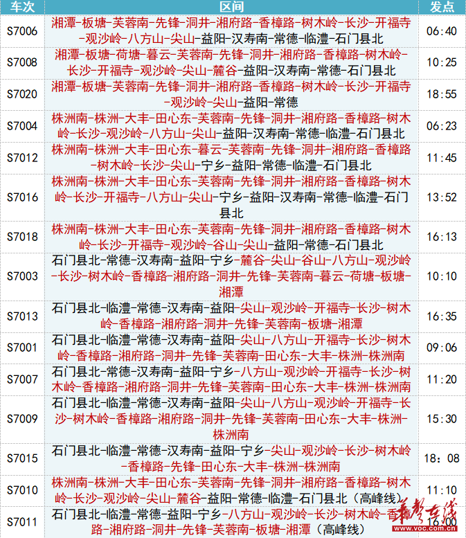 同时,针对早高峰南线旅客无直达西线列车的问题,本次调图也作出精准优化。将株洲、湘潭始发的S7004及S7006两列早高峰班次在西线各站安排停点,确保早高峰南线旅客能直达西线各站点并无需换乘,有效缓解通勤出行压力。