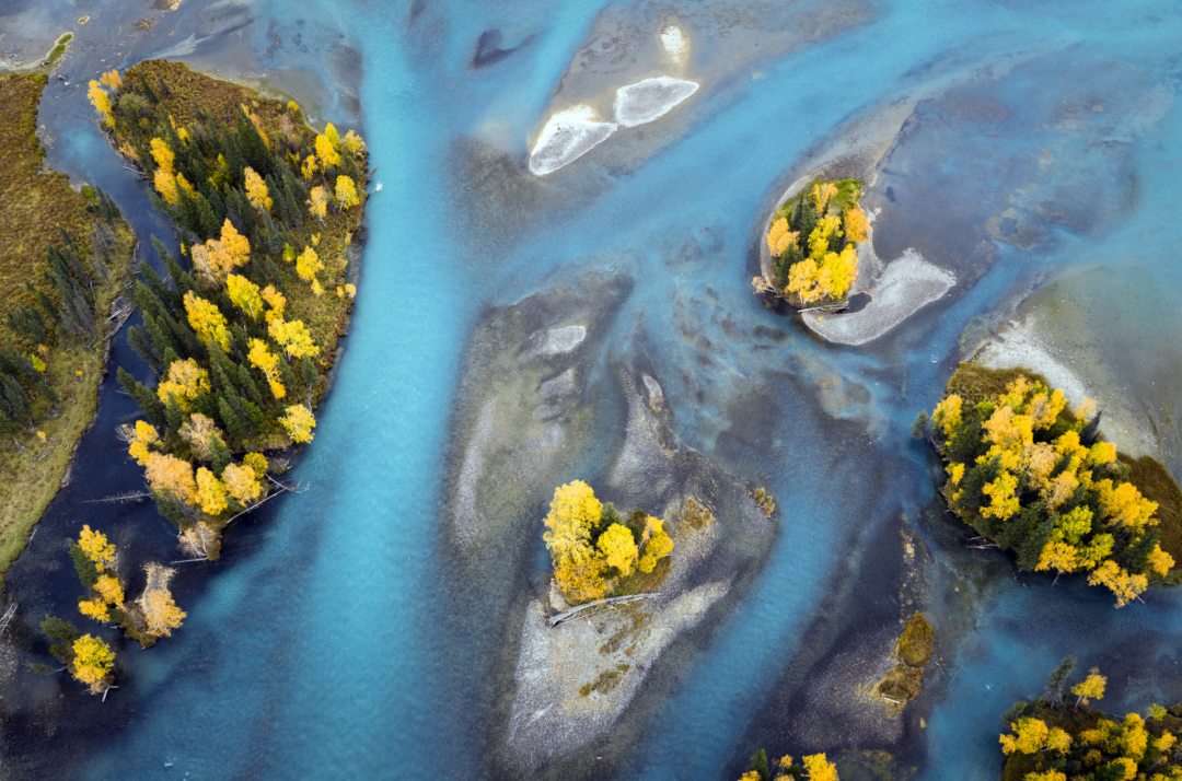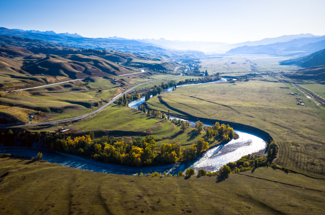 牧草从盛夏翠绿转为暖金,风过处如麦浪翻涌;哈萨克族白毡房散落其间,炊烟与晨雾缠绕,牛羊啃食饱满草籽,铜铃声清脆悠远。云杉林仍苍劲翠绿,与金黄草原形成“冷暖对冲”;远处天山山顶初雪点缀,银白与湖蓝、草金交织。新疆的棉花是长在地上的“云朵”,棉桃绽放出柔软洁白的花絮,在秋风中轻轻摇曳。都说风景在路上,北疆的几条风景大道便藏着最动人的秋色:独库公路:纵贯天山的“景观大道”,刚掠过荒漠戈壁的骆驼刺,转角就撞见雪岭云杉环抱的高山湖泊,驼铃声在风里慢悠悠荡开;S101国防公路:赤色峡谷与绿色草原交替铺展,银沙湾的弧线如上帝随手划过的笔触,将大地切割成流动的色块;阿禾公路:串联起阿勒泰与禾木的“童话走廊”——清晨的禾木,炊烟与晨雾在木屋间缠绵,而白哈巴的马群转场时,马蹄踏碎落叶的声响仍在记忆里震颤;荒漠公路:乌尔禾的胡杨站成永恒的姿态,枯枝干如铁画银钩,新叶却倔强地缀满金黄,在戈壁中点燃生命的火把。每一条路都是季节的切片,把北疆的“辽阔”与“坚韧”,缝进车轮碾过的每一寸土地里。
