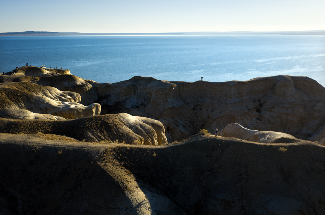 入秋后的赛里木湖,湖畔草地泛黄,湖水却异常深蓝,蓝金交织的色调,是游人共赴的秋日之约。
