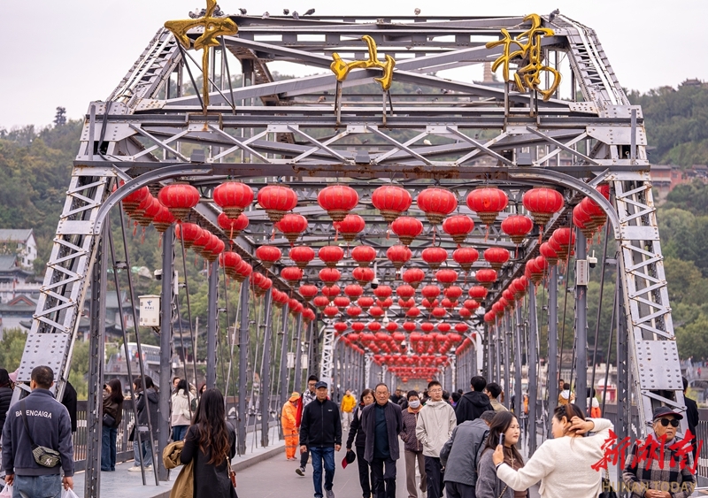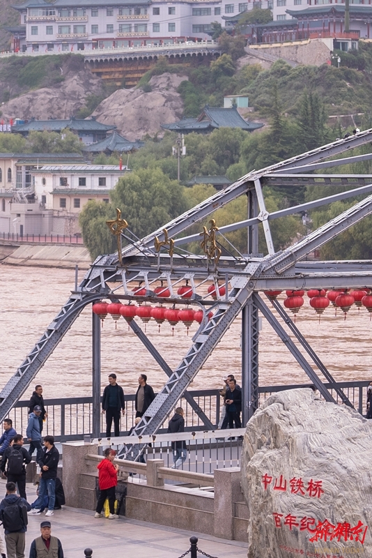 10月11日,游客在甘肃省兰州市中山桥参观游玩。兰州黄河铁桥,又名中山桥,是中国近代史上整个西北地区第一座引进外国技术建造的桥梁,体现了中国近代历史上洋务运动时期建筑艺术发展史的风格、流派、特征。它不仅是交通枢纽,更成为见证兰州城市变迁的 “活化石”,吸引着各地游客来此打卡留念。 湖南日报全媒体记者 童臻熙 摄