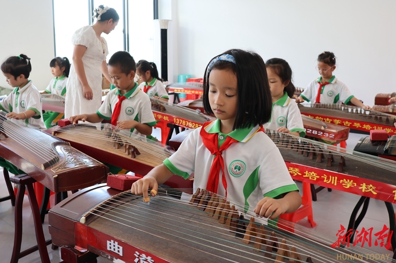10月11日,湘西土家族苗族自治州砂子坳小学,古筝社团的学生在练习古筝。近年来,该校把古筝、空竹等特色课程引进课后服务,满足学生的多样性需求。彭彪 摄(湖南图片库)