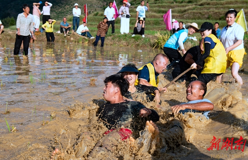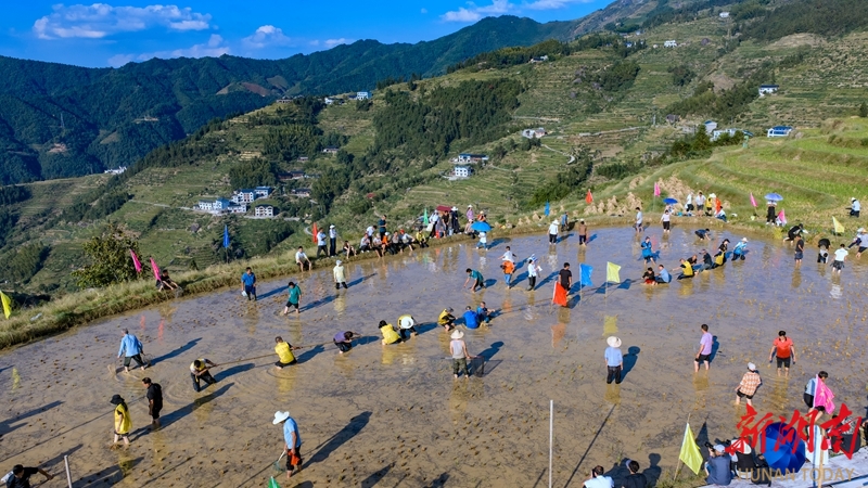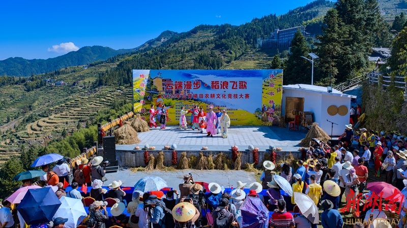 10月10日,“云端漫步·稻浪飞歌”暨2025年山背梯田农耕文化竞技大赛在溆浦县葛竹坪镇山背村举行。本次大赛深度融合传统农耕、民族文化与现代竞技元素,设置“颗粒归仓”“泥浆冲刺”“浑水摸鱼”等特色项目,吸引众多游客参与体验。雷文录 陈大森 摄影报道(湖南图片库)