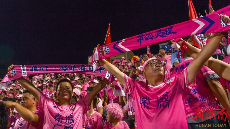 10月11日,球迷在呐喊助威。当天,湘超联赛进行第五轮比赛,湘西州队在凤凰县民族体育运动中心迎战常德队。最终湘西州队2比5不敌常德队。张寒烟 摄(湖南图片库)