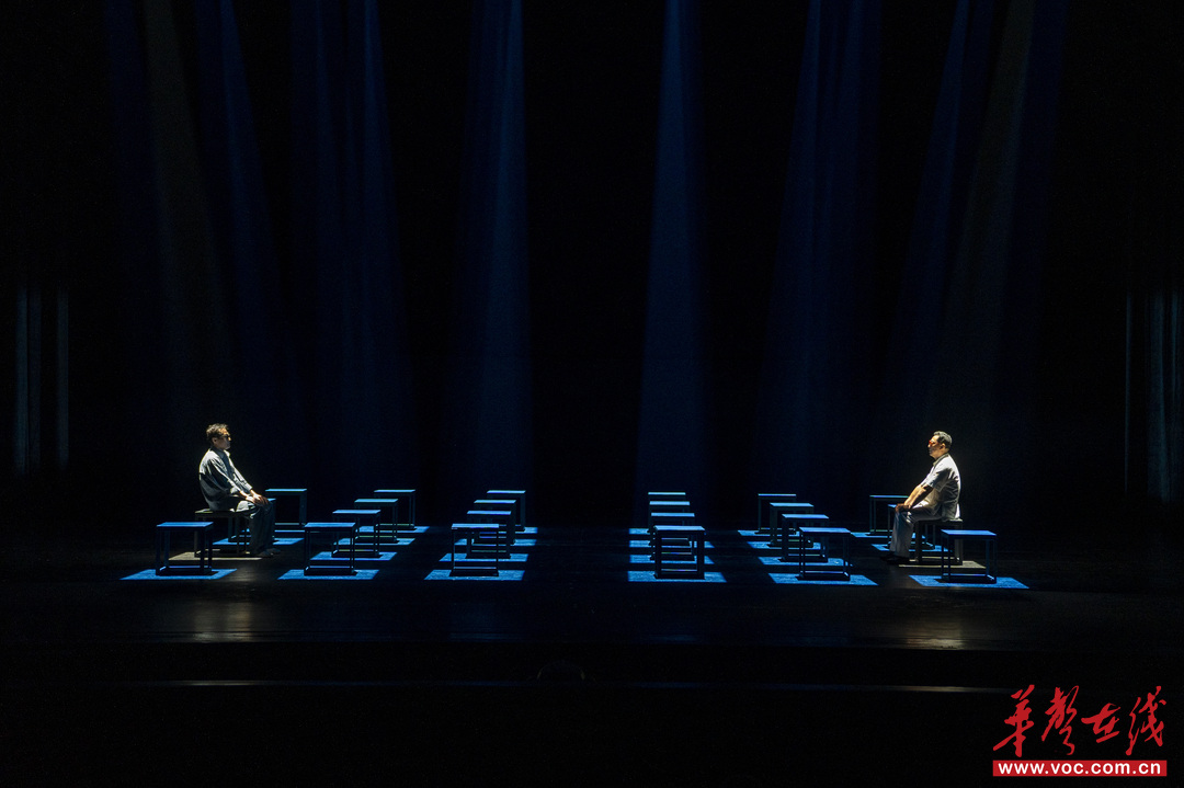 话剧《沧浪之水》改编自著名作家阎真同名小说,全剧以主人公池大为在省卫生厅的职业成长为主线,展现了当代知识分子在理想与现实冲突中的精神蜕变与价值坚守。创作团队既留存原著对人性、社会的深度思考,又通过灯光明暗交织、舞美虚实结合、肢体语言具象化的创新设计,让舞台迸发独特艺术魅力,让观众在沉浸中感受故事的力量。剧中“24把小方凳”勾勒场景层次,“一盏老油灯”承载精神符号,这些意象化道具巧妙串联起儒家文化处世智慧与现代社会现实议题。
