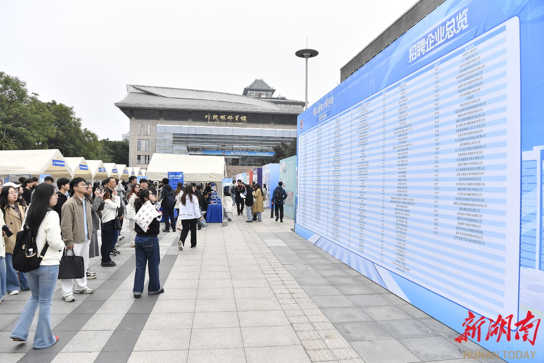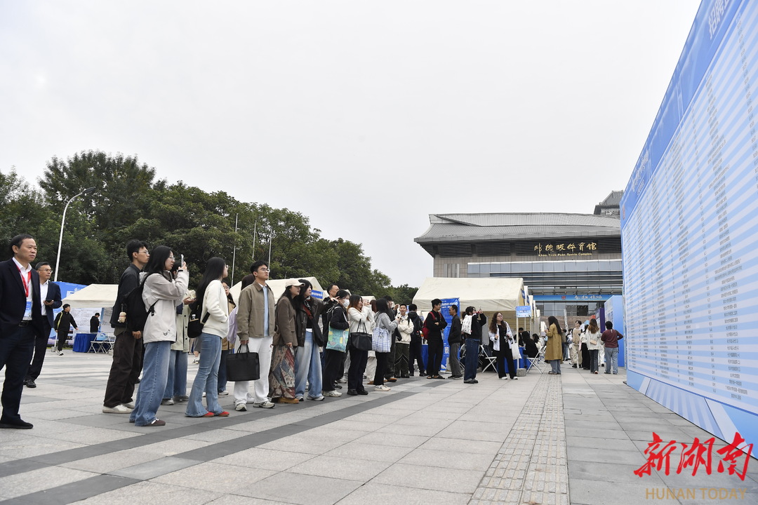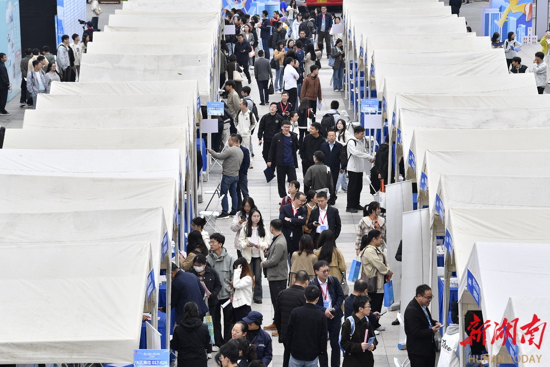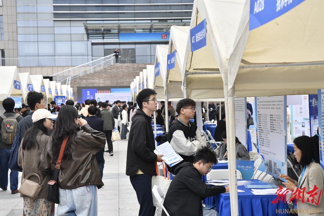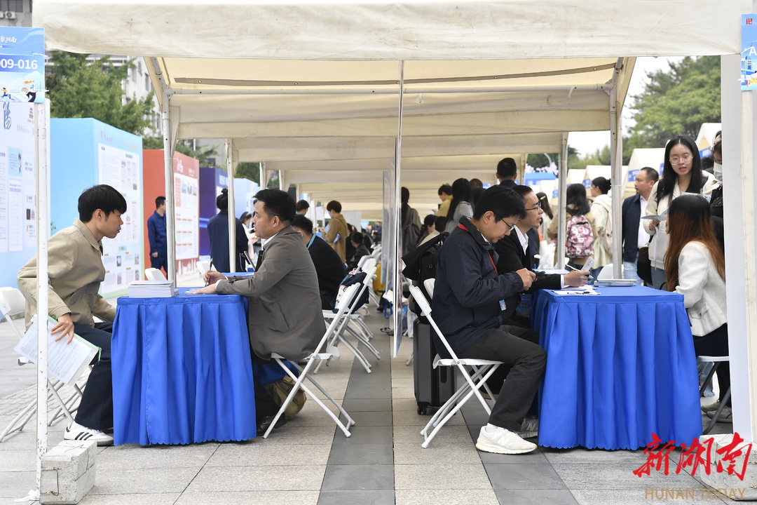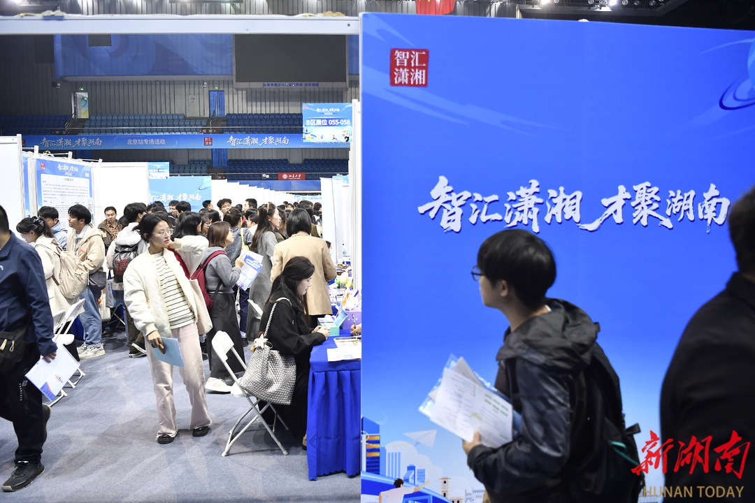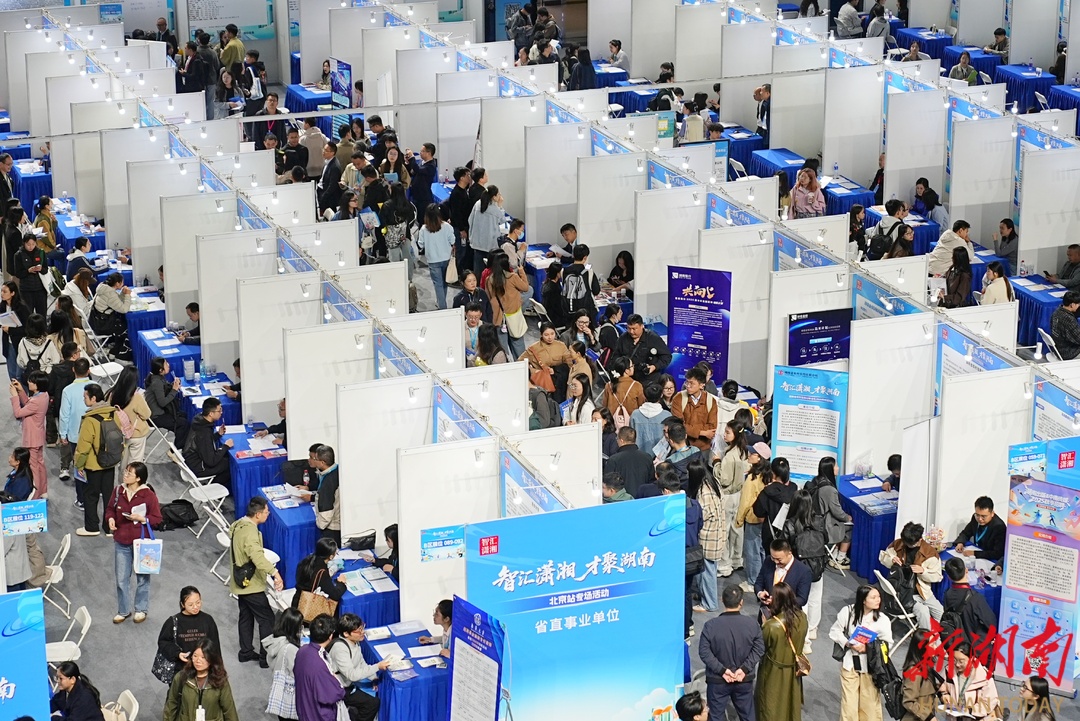 10月12日,“智汇潇湘 才聚湖南”北京站专场招聘活动推介大会在北京大学举行,现场发布了岗位需求目录。湖南近500家优质用人单位,超1.47万个岗位进京“招贤纳士”,彰显“求贤若渴、诚纳英才”的诚意。图为专场招聘活动现场。 湖南日报全媒体记者 童迪 傅聪 邹尚奇 摄影报道