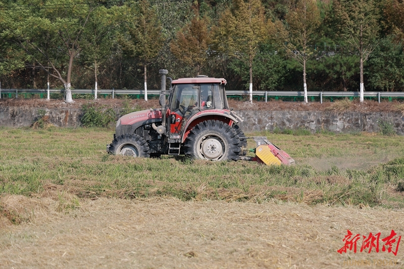 10月12日,通道侗族自治县万佛山镇杏花村,农机手驾驶旋耕机在粉碎秸秆。近年来,该县推进农业绿色发展,推广秸秆还田、粉碎还地技术,既减少焚烧污染,又提升土壤肥力。李尚引 摄(湖南图片库)