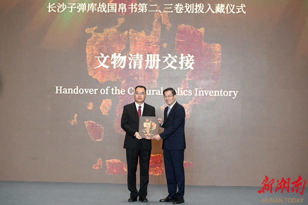10月13日,长沙子弹库战国帛书第二、三卷《五行令》与《攻守占》划拨入藏仪式在湖南省博物馆举行。图为划拨入藏仪式现场。湖南日报全媒体记者 郭立亮 摄