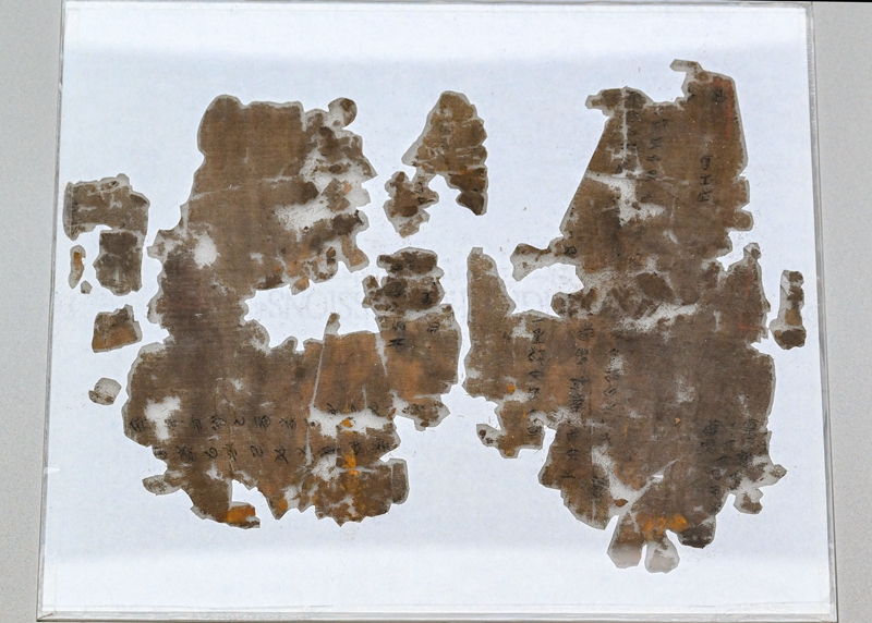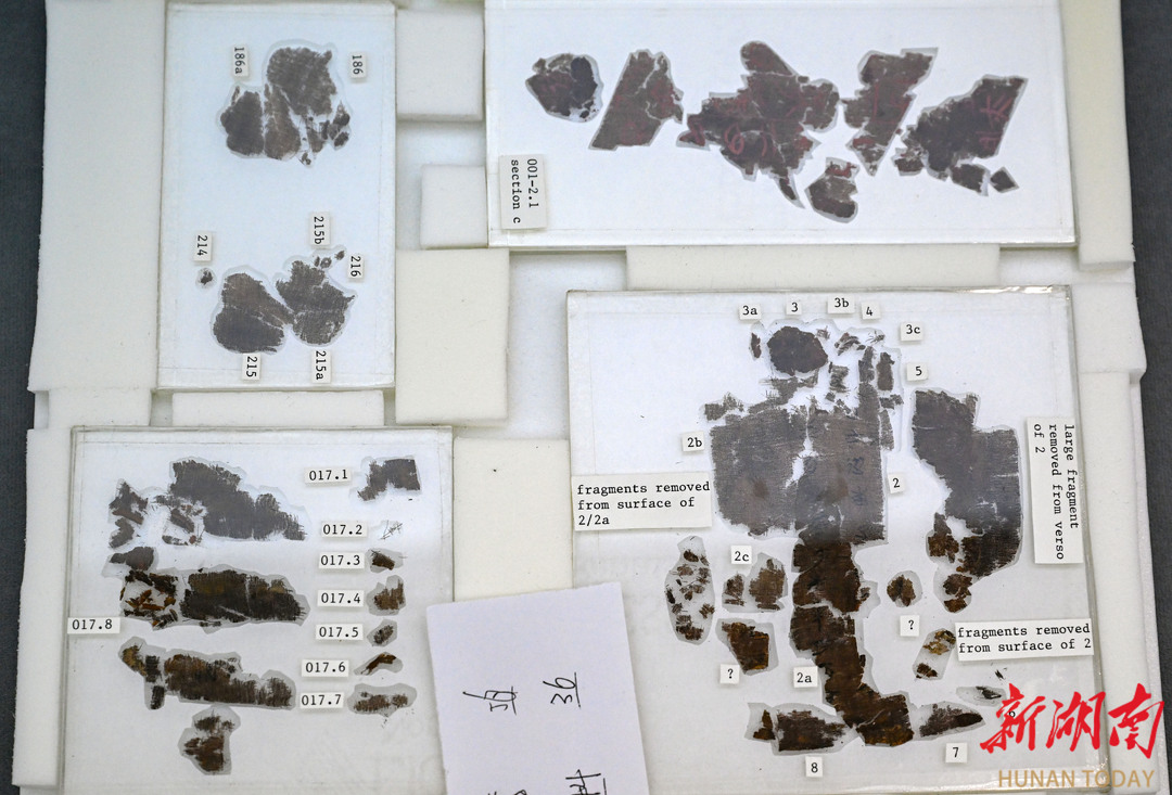 9月11日,湖南省博物馆文保中心,经过查验的长沙子弹库战国帛书残片。湖南日报全媒体记者 郭立亮 摄