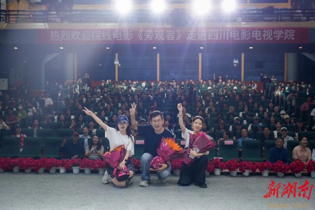 新湖南客户端10月13日讯(全媒体记者 谭好 通讯员 王东)10月10日下午2时,四川电影电视学院金牛校区演播剧场内掌声雷动,电影《旁观者》高校见面会在热烈的氛围中拉开帷幕。导演松加太、编剧杜庆春现场连线,与同学们畅谈影片创作的幕后故事。