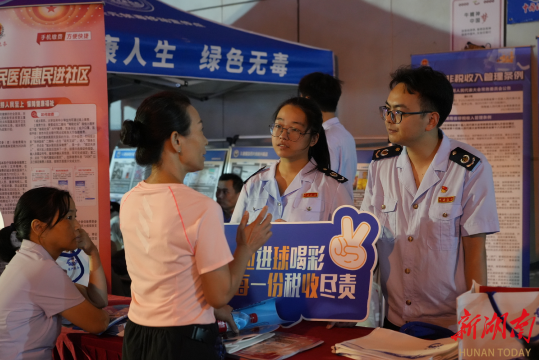 受众在哪里,税收普法宣传的触角就伸向哪里。赛事期间,株洲市税务局、株洲高新区税务局纳服、社保部门业务骨干组建税费普法团队来到“湘超”现场,在球场外开设“流动税宣站”,设置专题宣传栏、发放税费政策“口袋书”,并为观赛球迷提供“面对面”个性化服务。