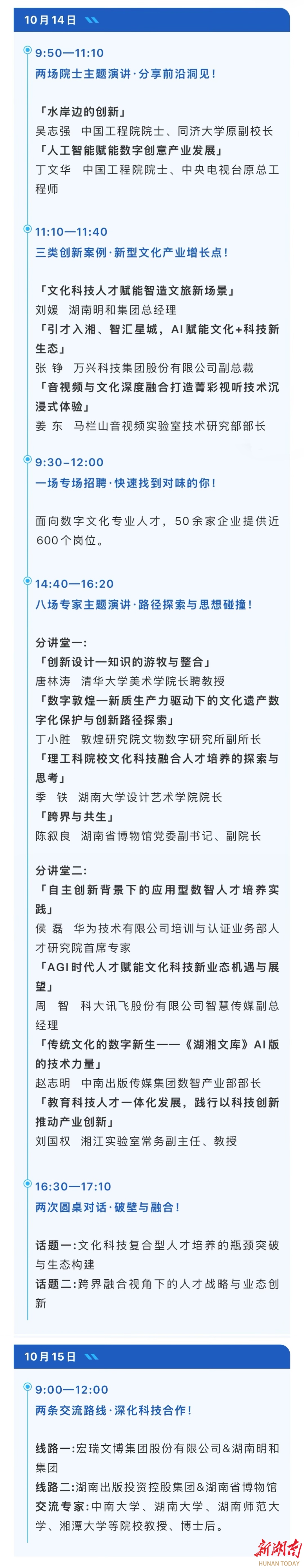 如何探索走好具有湖湘特色的融合之路,发挥人才的关键驱动作用成为焦点。10月14日,人社部与湖南省政府联合主办的“人才赋能文化和科技融合发展”专家创新大讲堂,在长沙圣爵菲斯大酒店即将精彩开讲。