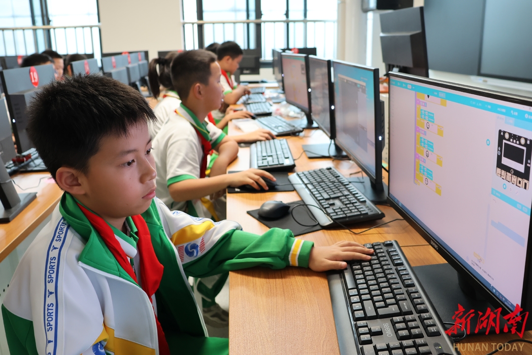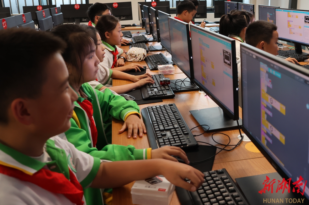 10月13日,湘西土家族苗族自治州砂子坳小学,编程社团的学生在课后服务中练习编程。近年来,该校把计算机编程引进课后服务社团,发展学生创新思维和创新能力。 彭彪 摄(湖南图片库)
