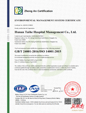 通过ISO14001环境管理体系认证,展现长沙泰和医院健康管理中心对环保方面的重视与企业履行社会责任的担当。该中心以实际行动践行环保理念,从体检区域的清洁消毒、医疗废弃物的合规处理,到室内空气质量的实时监测,全方位打造绿色、环保、安全的体检环境,让您在舒适的环境中完成健康检查。