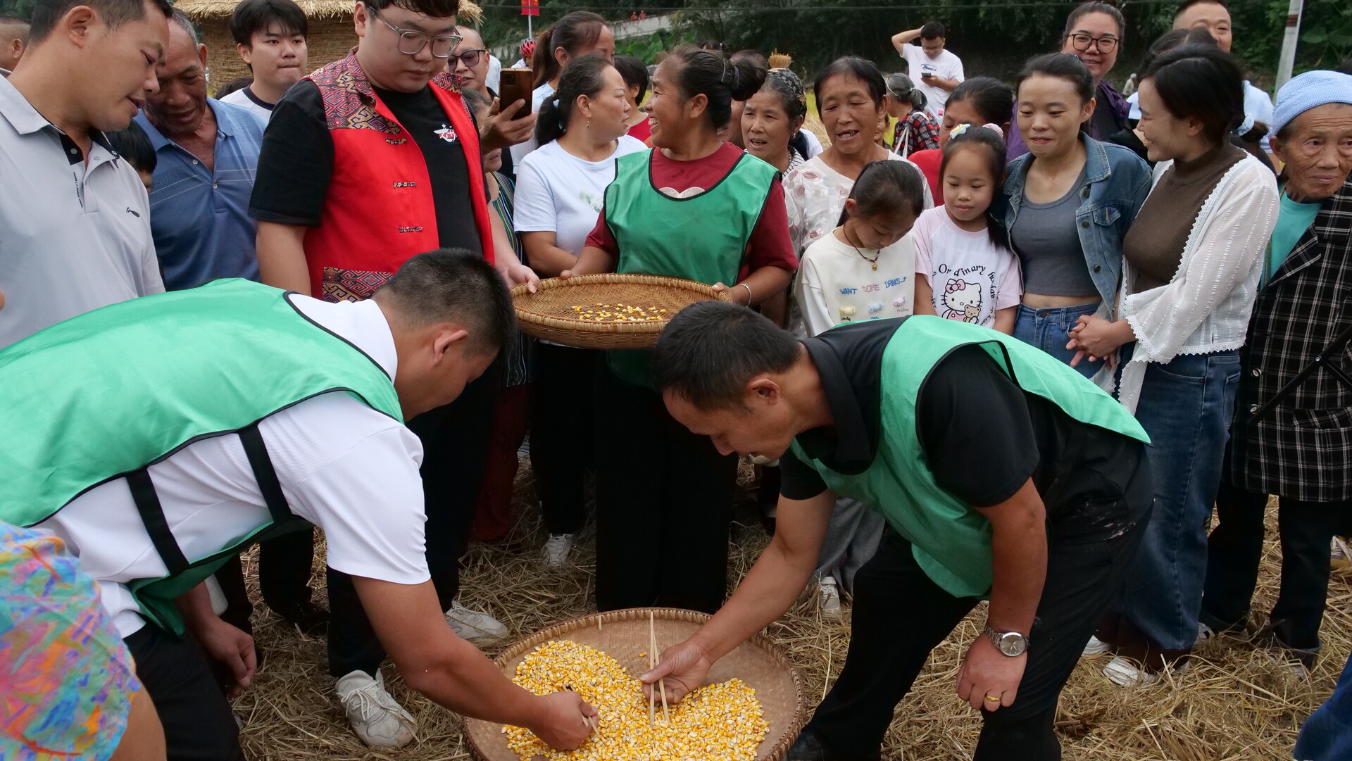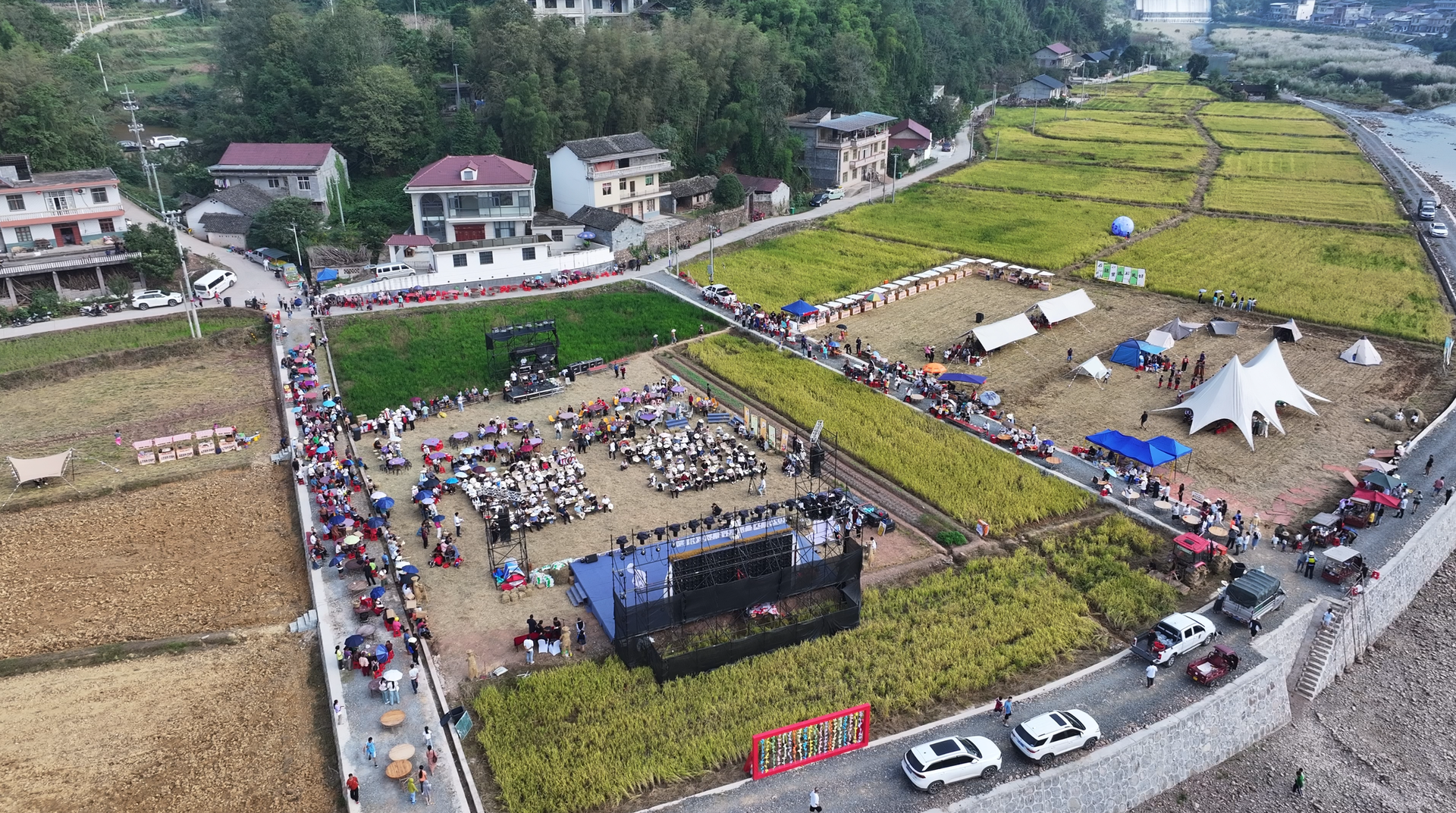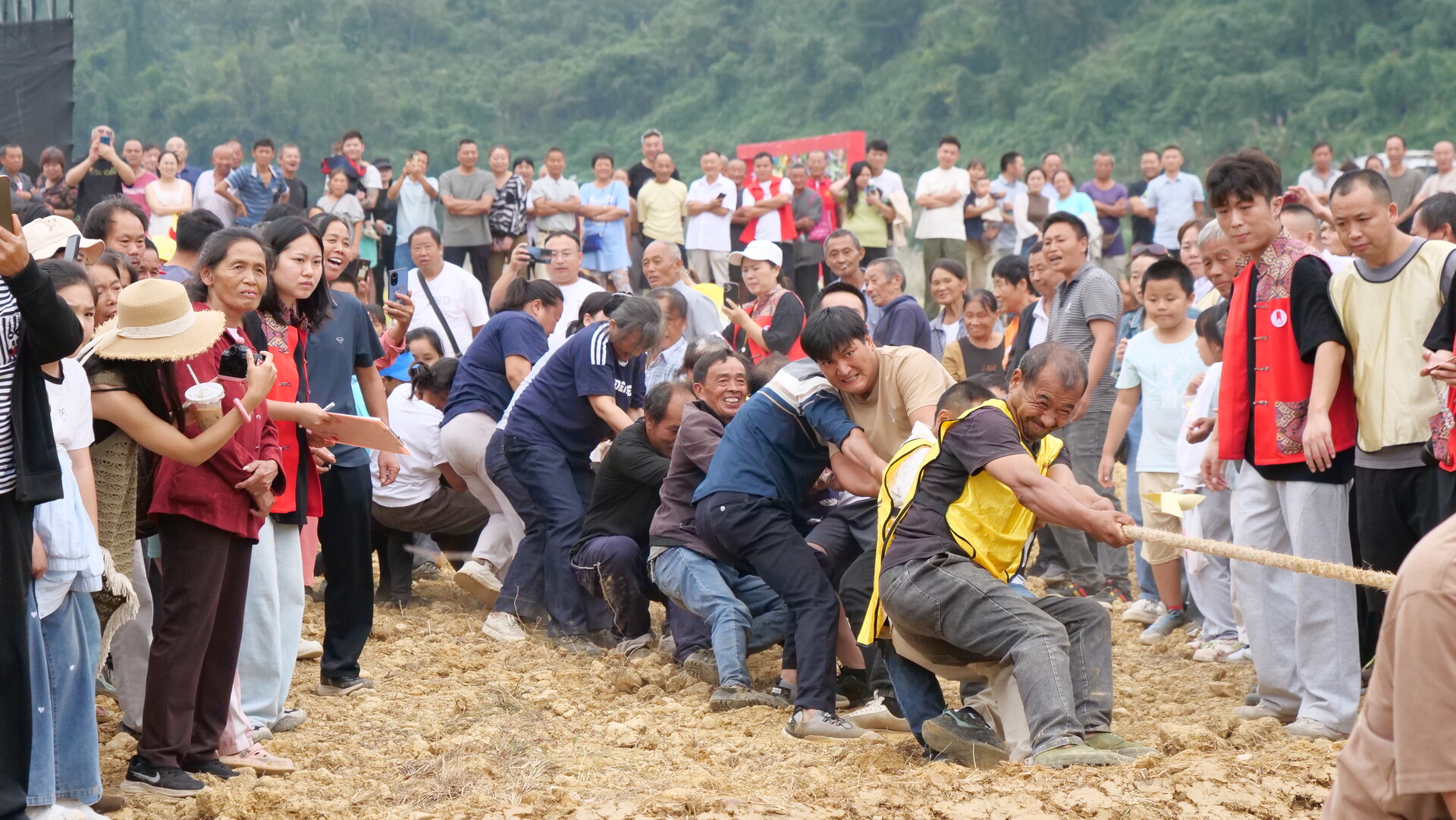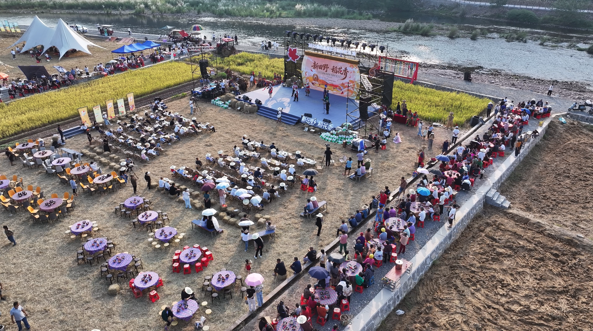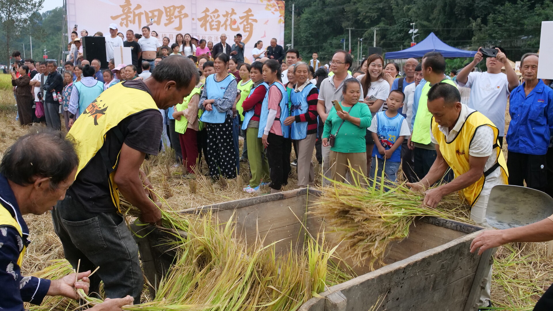 除了启迪思维的恳谈会,本次秋收活动还充满了浓郁的烟火气与趣味性。在“新田野趣味赛”现场,村民们踊跃参与收割水稻、脱粒竞速、趣味拔河等项目,在欢声笑语中重温农耕乐趣,共享丰收喜悦。随后的“稻田营地音乐会”和“千人长桌宴”,则交织着悠扬民谣与地道风味,让参与者沉浸式感受到廖家村镇的热情好客与丰收欢愉。“来找朋友玩,正好遇上这次丰收活动,大家一起玩游戏、看表演、享美食,氛围特别棒!”来自云南的游客彭珠珠说道。