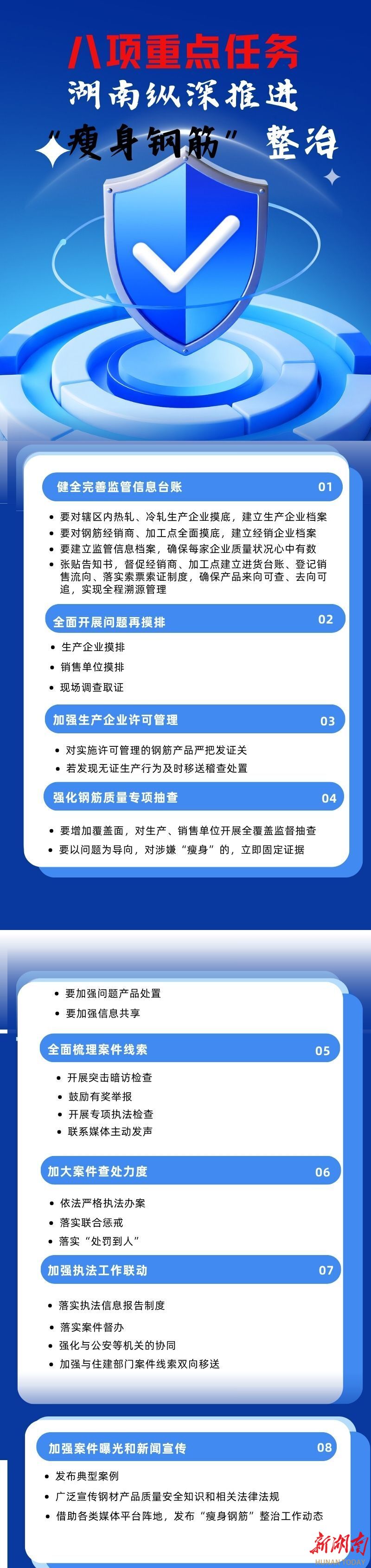会议指出,我省前期开展“瘦身钢筋”专项整治,已取得初步成效。为压实监管责任、提升工作效能,省市场监督管理局制定《纵深推进钢筋产品质量安全专项整治行动方案》,明确“七个一”工作目标与八项重点任务,涵盖健全监管台账、全面摸排问题、强化许可管理、专项抽查、线索梳理、案件查处、执法联动、宣传曝光等环节,构建钢筋生产、销售、使用环节的闭环监管体系,坚决守住质量安全底线。