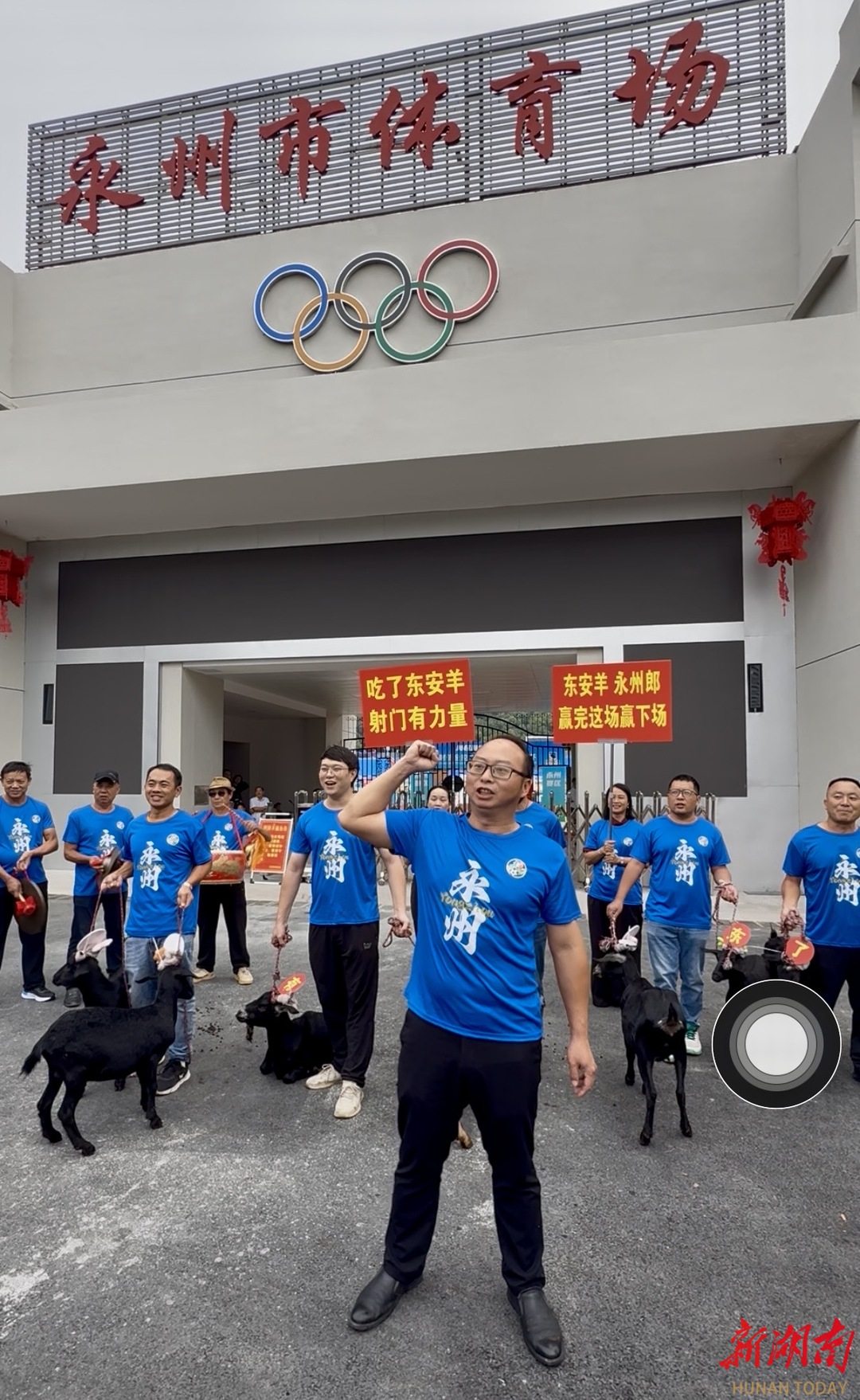 吃了东安羊,射门有力量!10月14日,东安羊老板陈雄亮带着十头精心挑选的山羊来到永州市体育场前,将其赠予湘超永州代表队,为两天前刚取得主场大胜的球队送上暖心鼓励。