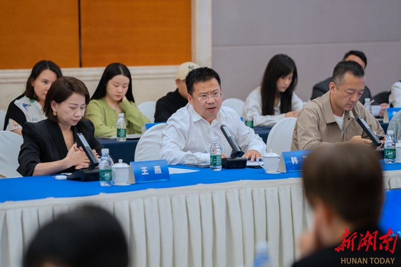 10月14日,部省共建·头部视听企业座谈会在长沙市举行。会议以“部省协同 视听赋能”为主题,聚焦马栏山视频文创产业园高质量发展,汇聚政府部门与头部视听企业力量,共商合作路径,共绘发展蓝图。 湖南日报全媒体记者 李健 摄