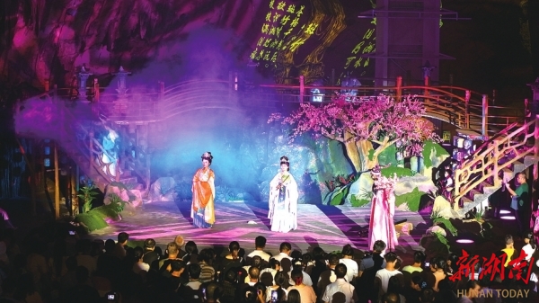 九嶷山景区紫霞岩实景表演《天下九嶷之二妃寻夫》,深受游客欢迎。杨铭 摄