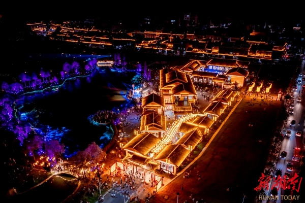 今年国庆假期,夜晚的九嶷山景区南风集,流光溢彩,游人如织。 李文 摄