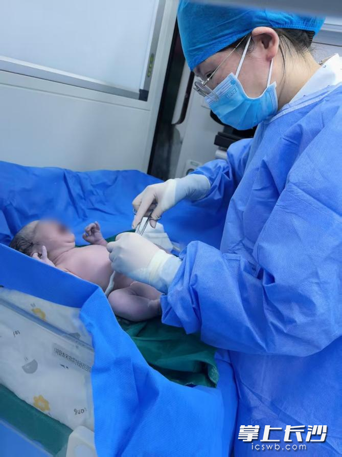 此时,28岁的孕妇刘玉(化名)腹痛难忍,羊水打湿了其衣裤和卧铺车厢上的床单。乘务组工作人员一边通知长沙市120急救中心,一边在孕妇所在的卧铺车厢床上铺上干净的床单,以便协助分娩。很快,一名男婴自然分娩,随后长沙市120急救中心医务人员赶到,经消毒、断脐、保暖、处理胎盘后,4时37分,众人合力将母婴转至救护车上;4时40分,120救护车驶离长沙南站,将母婴紧急送往长沙市中心医院(南华大学附属长沙中心医院)。在大家齐心协力的帮助下,至记者发稿时,产妇与男婴状态稳定,母子平安。