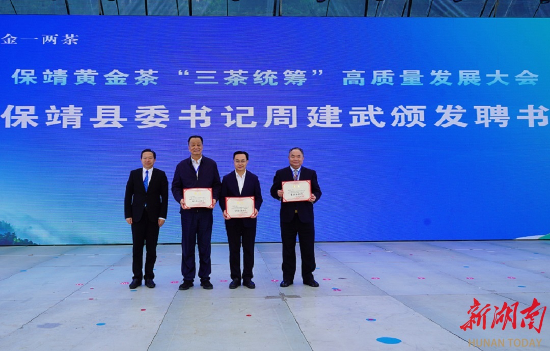 茶香溢保靖,群贤话未来。10月14日,保靖县召开保靖黄金茶“三茶统筹”高质量发展大会。湖南省人大常委会原副主任叶红专,中国工程院院士、湖南师范大学校长刘仲华,湘西土家族苗族自治州人大常委会主任吴凌频,以及中国茶叶流通协会、湖南省农业农村厅等单位的领导嘉宾出席盛会。保靖县委书记周建武出席并致辞,来自怀化市、衡阳市、湘西州等地的千余名茶产业从业者共襄盛举。