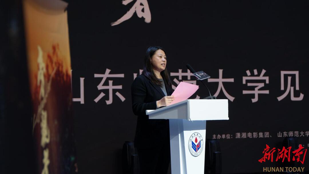 活动伊始,张新英致欢迎辞。她回顾了学校自1902年以来的文脉传承与75年师范教育积淀,指出学院自1985年开创山东媒介教育先河,现已构建起涵盖戏剧与影视学博士点的完整学科体系。张新英强调,此次与潇湘电影集团的合作,不仅是推动影视精品进校园的生动实践,更是学界与业界共同探索影像美育路径、深化影视人才培养的重要契机。