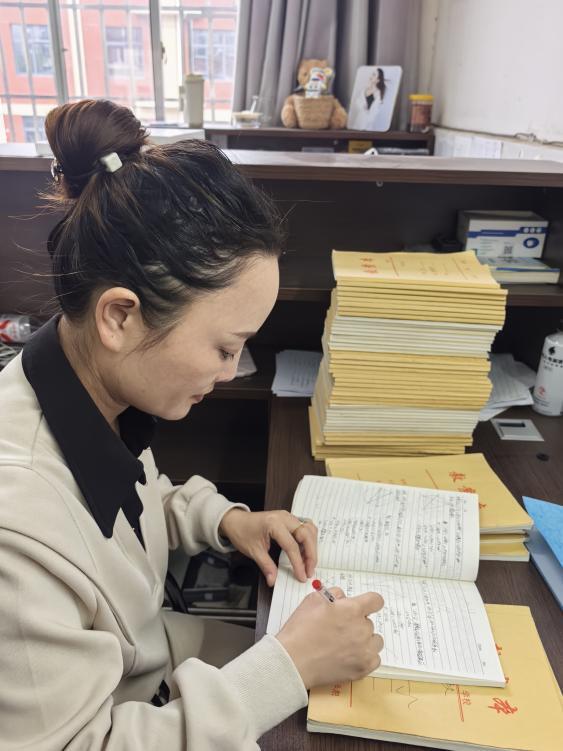 清晨7点半,昭陵中学还笼罩在深秋的薄雾中,教学楼里却已亮起了一盏灯。初三289班教室的门虚掩着,一个身影正忙碌地穿梭在课桌之间——那是于焱灵老师,她正将昨夜批改好的作业本轻轻放回每个学生的桌上。窗外的梧桐树上,几只早起的麻雀叽叽喳喳,仿佛在诉说着这个平凡早晨里不平凡的故事。