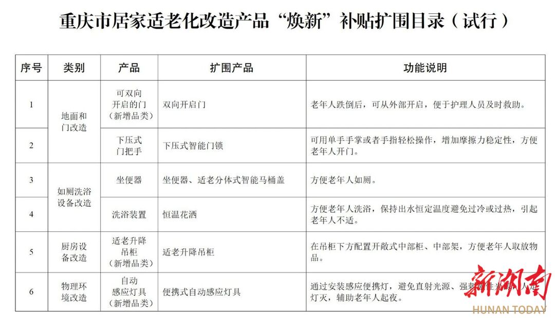 为更好满足老年人消费需求,积极促进养老服务消费,充分释放消费潜力,进一步提高政策执行的可操作性,决定对2025年重庆市居家适老化改造产品“焕新”补贴政策有关举措进行优化,具体如下。