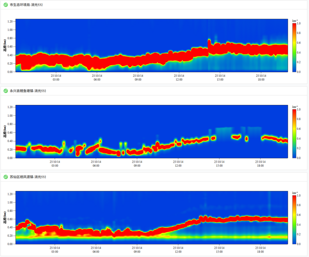 颗粒物激光雷达显示,我市正北方持续有污染气团往我市城区输送。