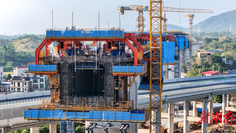10月15日,永州市邵(阳)永(州)高铁跨芦洪江特大桥项目建设现场,中铁二十五局施工人员正在施工。该桥全长3050.955米,跨越益湛线、永零高速、省道、河流,是全线的重点难点工程之一。邵永高铁是我国“八纵八横”高铁网中呼和浩特至南宁通道的重要组成部分,建成后,对完善区域铁路网布局,促进中部地区高质量发展具有重要意义。雷中祥 摄(湖南图片库)