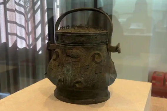 ▲衡阳出土的“春秋动物纹提梁卣”,来自2000多年前的春秋时代。