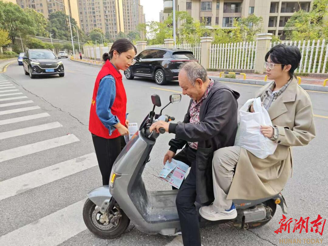 湖南日报·新湖南客户端10月16日讯(通讯员 向天任) 为深入推进“一盔一带”安全守护行动,提升辖区居民交通安全意识,有效预防和减少道路交通事故的发生,10月15日下午,长沙市天心区暮云街道楠竹社区联合天心区交警十一中队、和美星城物业公司,在和美星城小区主要出入口及周边路段共同开展“盔护平安行,安全伴你行”为主题的交通文明劝导活动。