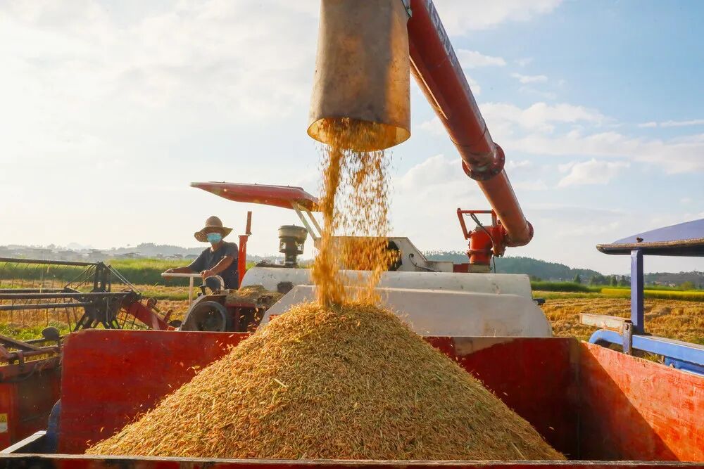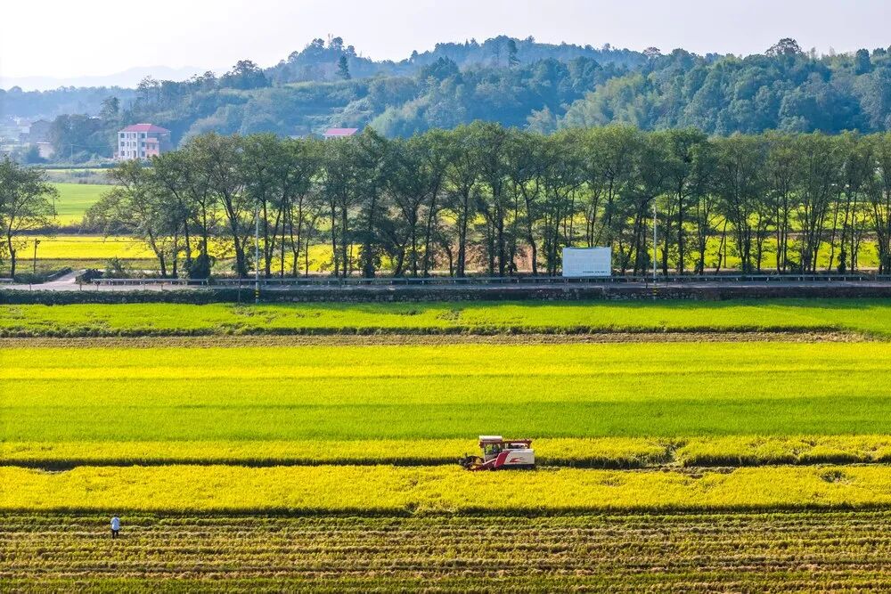 10月16日是第四十五个世界粮食日,三湘大地处处洋溢着丰收的喜悦。在嘉禾、祁东、双峰等粮食产区,连片的金色稻浪随风起伏,大型收割机穿梭其间,一派“抢收保丰”的繁忙景象。