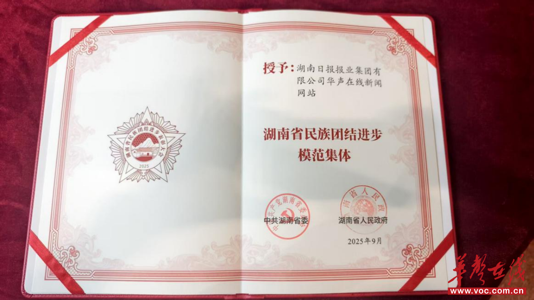 新湖南客户端10月16日讯(全媒体记者 赖泳源)10月15日,湖南省民族团结进步表彰大会在长沙举行,华声在线新闻网站获评湖南省民族团结进步模范集体,在会上受到表彰。