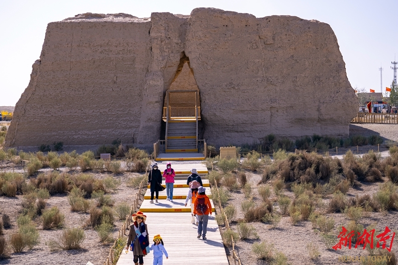 10月15日,游客在甘肃省敦煌市玉门关遗址区参观游览。玉门关遗址位于甘肃河西走廊最西端,是人们感受历史文化、体验戈壁风光、探寻丝路遗迹的目的地。 湖南日报全媒体记者 童臻熙 摄