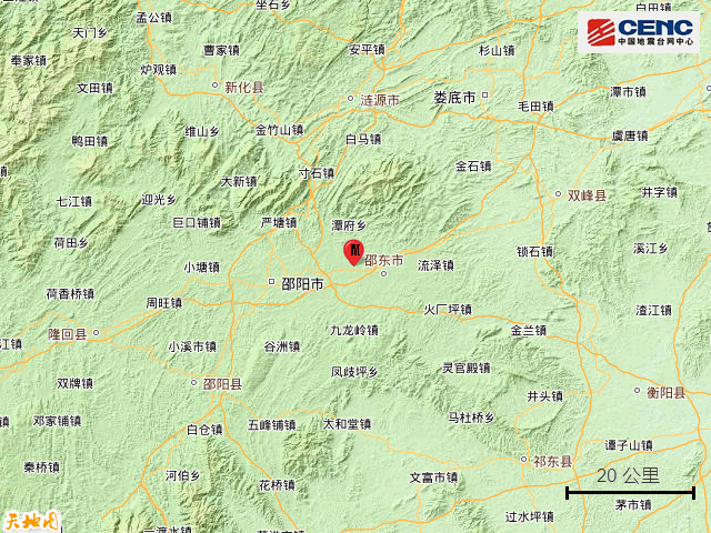 据中国地震台网正式测定,10月16日23时46分在湖南邵阳市邵东市发生3.4级地震(塌陷),震中位于北纬27.28度,东经111.67度。