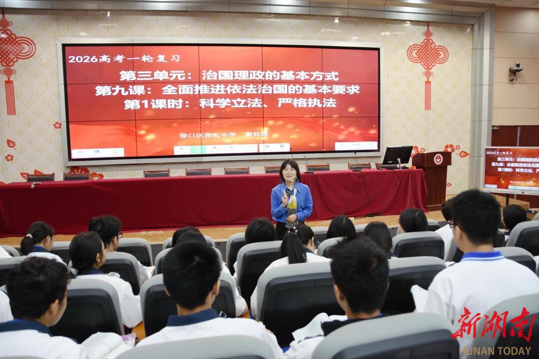 渌口区五中副校长、高三思想政治老师廖桂霞和2303班学生带来了一堂复习研讨课。