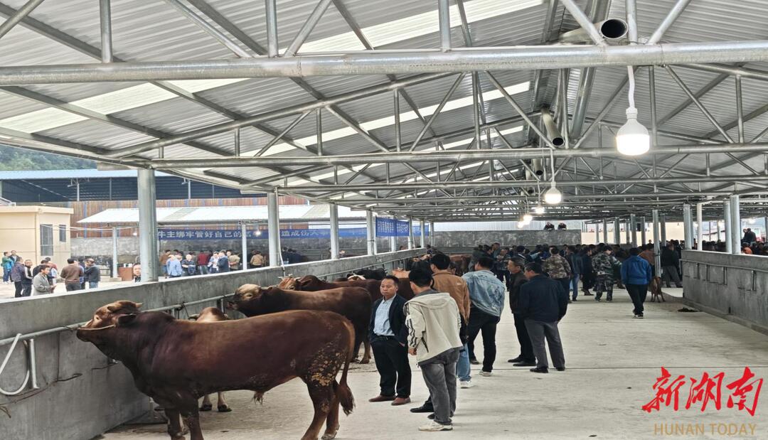 “哞——”“老板,这头‘铁蹄牛’开个实价?”10月16日清晨,湘黔交界处的新晃凉伞镇万家康大黄牛交易市场人声鼎沸。浑厚的牛哞声、清脆的牛铃声与客商的询价声交织回响,宣告着黄牛交易市场的火爆开市。这不是普通集市的开业,这背后,是一场深刻的产业变革。
