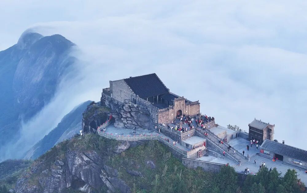 近期,位于衡阳市的南岳衡山风景区迎来一场“云海盛宴”。随着天色渐亮,海拔1300.2米的祝融峰顶,乳白色的云海如绸缎般铺满山谷,时而翻涌成浪,时而静若平湖。