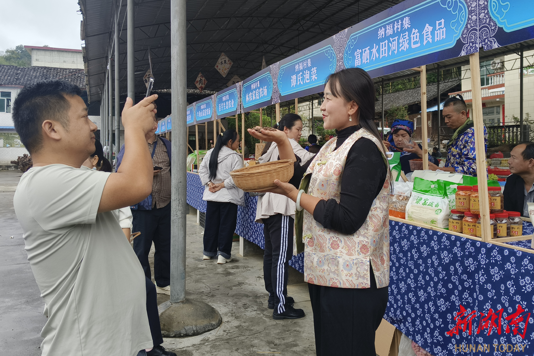 8时18分,纳福村集首播暨直播助农培训正式启动,4个固定直播点与3个流动直播点同步开启。大妥村电商直播中心里,专业主播“丽琴”正对着镜头展示金黄的菜籽油。木房子直播点前,76岁的村民彭家翠好奇地凑到镜头前,看着主播和屏幕里的“家人”互动,忍不住笑着说:“这个活动好,村里变热闹了,用手机就能卖农货,真了不起!”