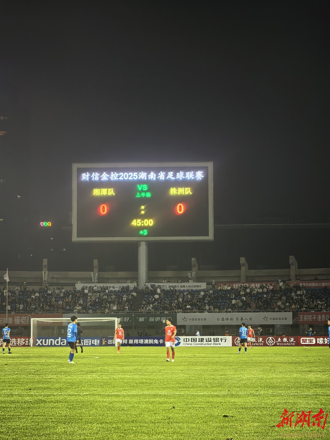 湖南日报·新湖南客户端10月17日讯(颜石敦 蒋睿 彭婷 胡孟婷 邓玉娇)10月17日晚,2025“湘超”联赛,湘潭队坐镇主场迎战株洲队。目前上半场结束,经过激烈比拼,双方战成平局。
