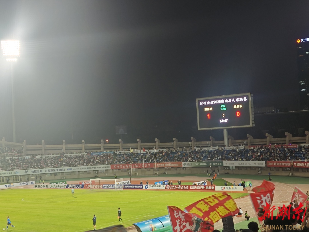 湖南日报·新湖南客户端10月17日讯(颜石敦 蒋睿 彭婷 胡孟婷 邓玉娇)10月17日晚,2025“湘超”联赛,湘潭队坐镇主场迎战株洲队。下半场比赛正在激烈进行中,第53分钟,湘潭队先下一城,比分来到 1:0。