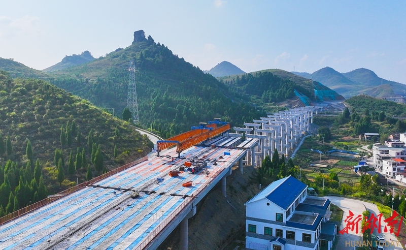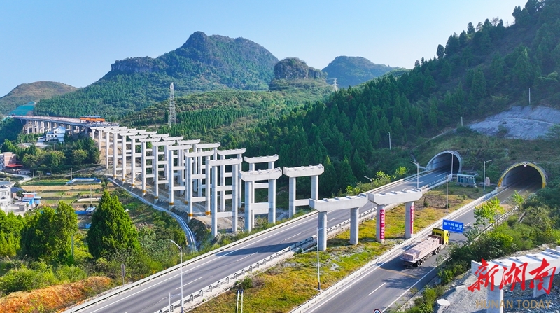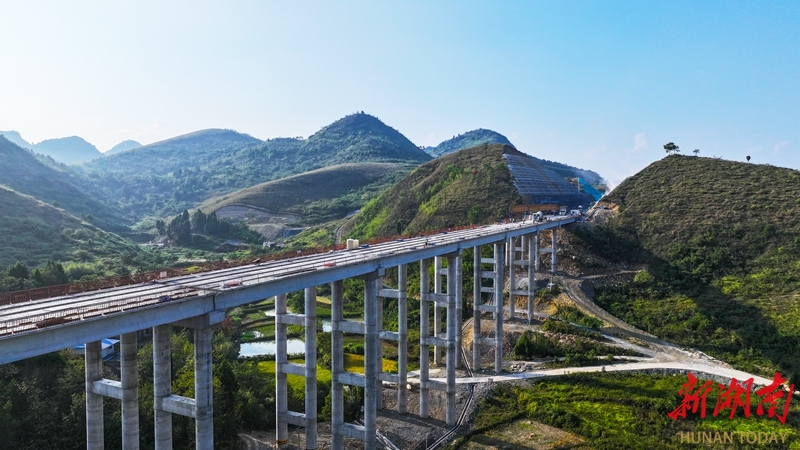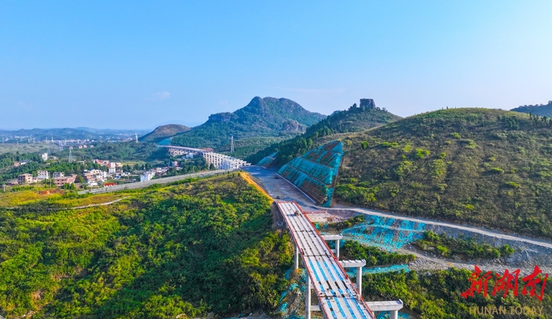 10月17日,新田县龙泉街道石甑源村,建设中的桂(东)新(田)高速公路犹如一条“巨龙”穿梭山岭,与田园、村庄、青山相映成景,壮美如画。桂新高速公路是湖南省“十四五”重点项目。建成后,将显著改善湘南山区交通基础设施条件,为沿线地区乡村旅游开发和农业产业升级提供强有力的交通支撑。刘贵雄 陈祉凝 摄影报道(湖南图片库)