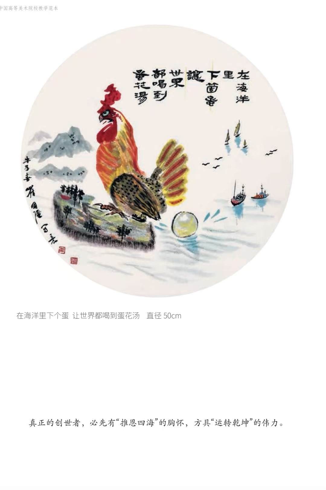 该画册收录了崔国强先生以“鸡”为主题创作的众多水墨作品。在后记中,作者以“借三寸砚田,种偶得之思;以凡禽俗态,照浮世清欢”自述创作心境。作品通过独特的艺术视角,在“歪爪秃羽”间暗藏禅意,于平凡物象中折射人生哲理,力求引发读者共鸣。正如作者所言,这正是他所追求的“鸡生最高光‘打鸣’时刻”。