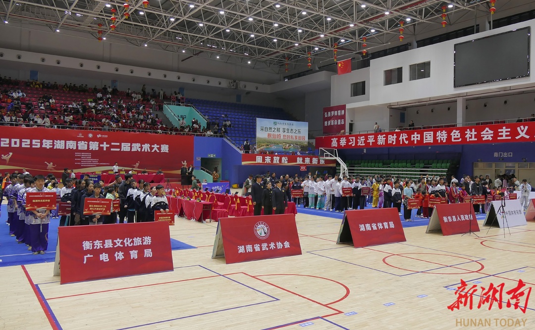 新湖南客户端10月18日讯(记者 胡旻 通讯员 唐静)10月18日上午,湖南省第十二届武术大赛在衡东县奥体体育馆拉开帷幕。来自全省各地的武术健儿汇聚洣水河畔切磋技艺、以武会友,共展湖湘武术的独特魅力。