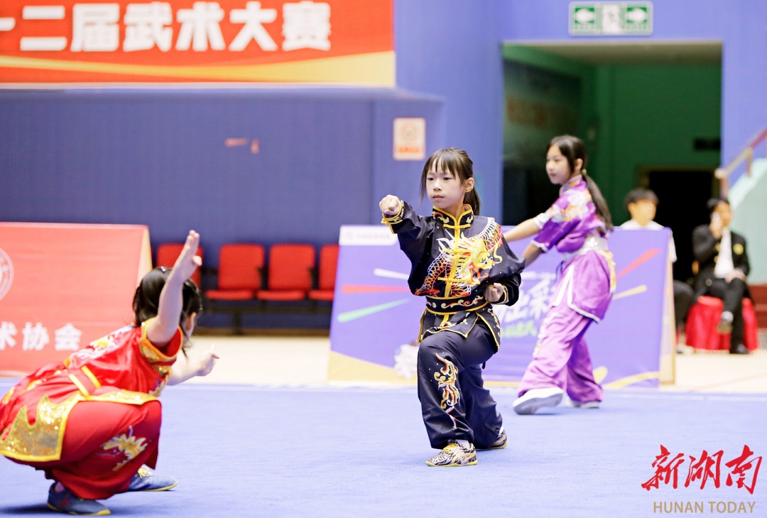 赛场上,参赛队员们精神饱满、斗志昂扬,纷纷展示着自己的“武艺”,或勇猛刚健、或飘逸潇洒、或舒展大气……在腾挪转移、身形变换中,将灵活多变、刚柔兼济、勇猛快速的身法演绎得淋漓尽致,一招一式之中都充盈着健康之美,展现出湖湘青少年朝气蓬勃、奋发向上的精神面貌。