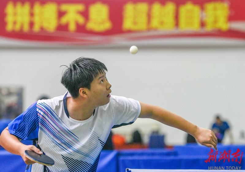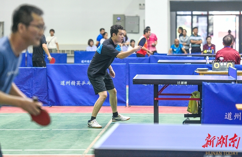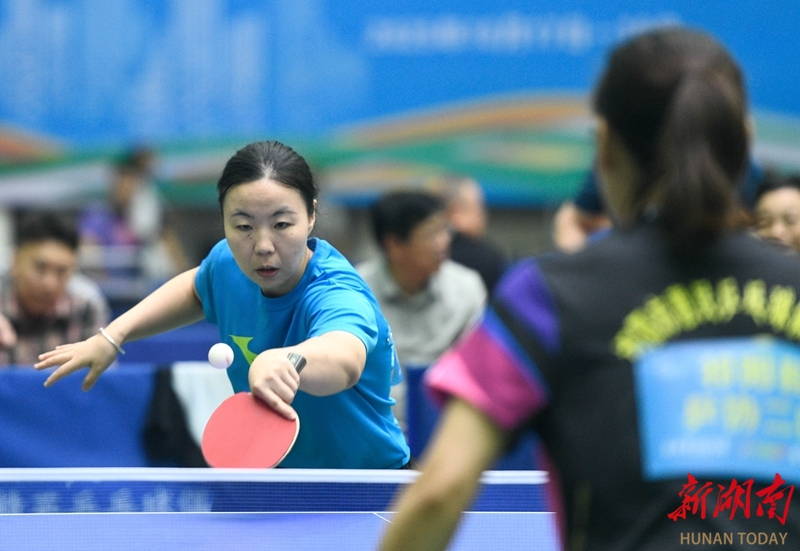 10月18日,选手正在比赛中。当天,永州市2025年“体彩杯”精英乒乓球赛在道县文体公园训练馆拉开帷幕,来自永州市市直单位和各县区的28支队伍、210余名选手齐聚一堂,展开为期两天的激烈角逐。蒋克青 彭浪 摄影报道(湖南图片库)