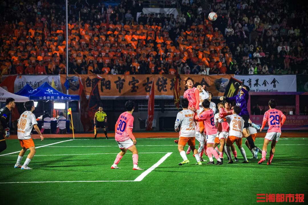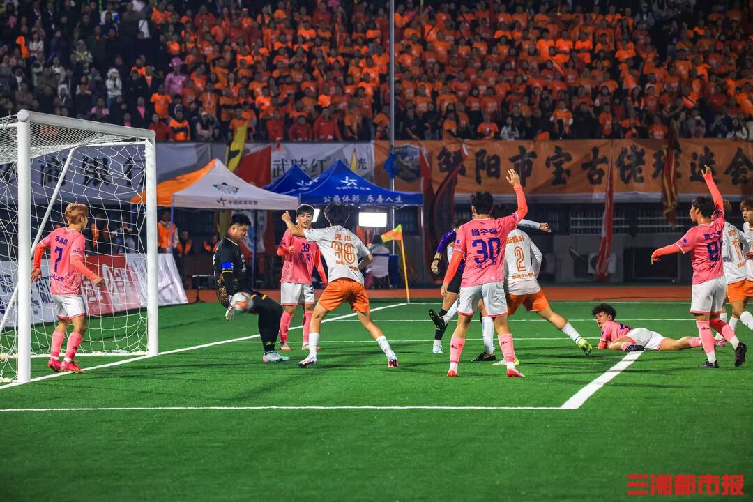 湘超第六轮,常德主场迎战邵阳,比赛最后一分钟,邵阳把握机会绝平比赛。(刘丰 叶竹 刘文 黄亚苹 唐雨琪 周洋 摄)